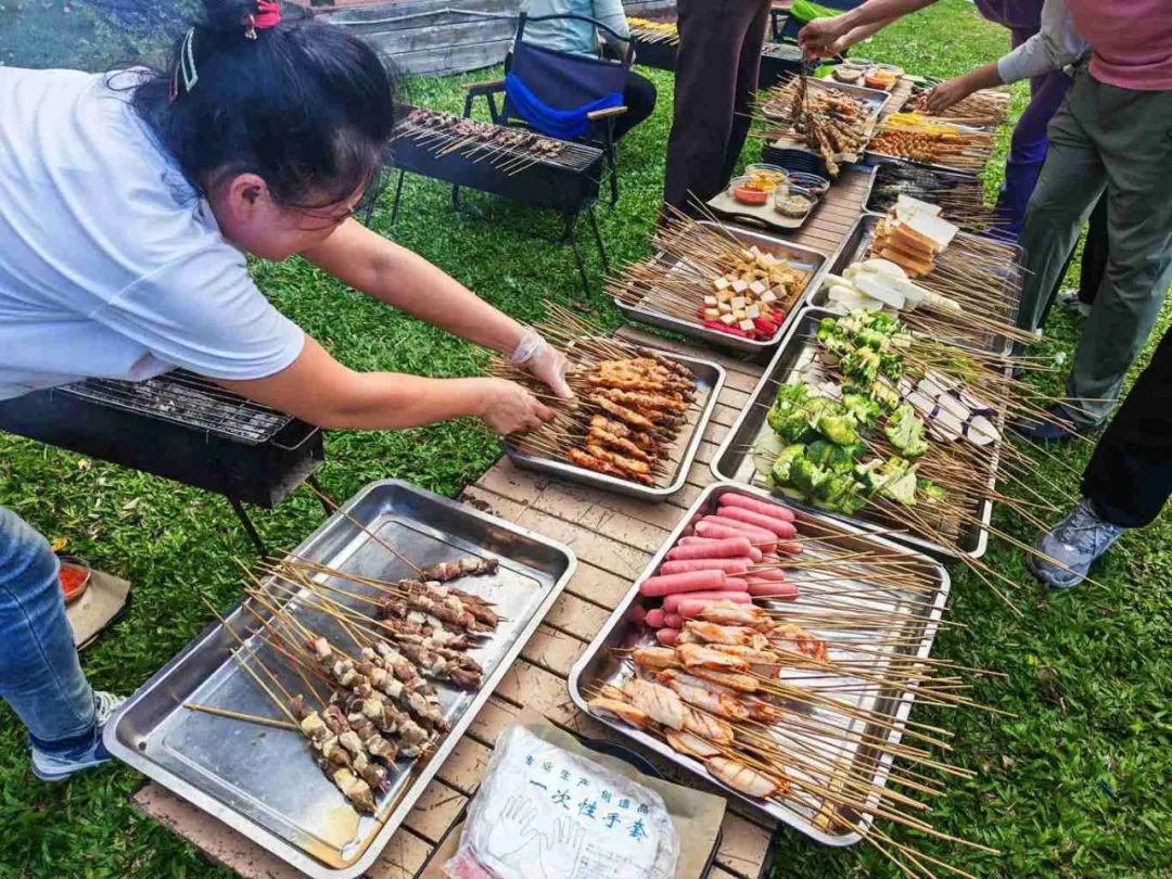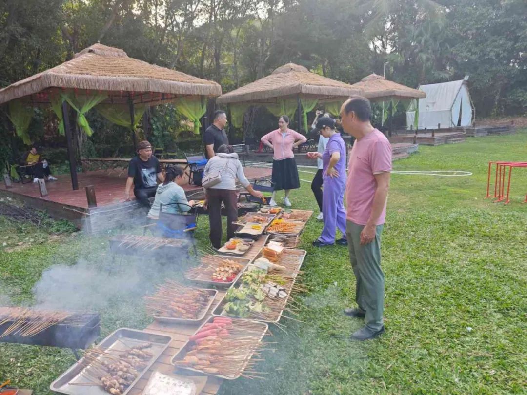 隨著夜幕的降臨,美味的晚餐時刻正式拉開帷幕。公司精心準(zhǔn)備了豐盛的BBQ露營燒烤和香氣四溢的烤全羊,讓員工們大飽口福。